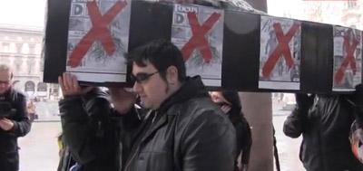 E’ sciopero contro l’annuncio di 36 esuberi. CDR: i redattori mettono in scena la cerimonia funebre delle riviste scientifiche condannate alla chiusura. La Società replica: “L’obiettivo è reinvestire". La "cerimonia" si è svolta lunedì 15 davanti alla libreria Mondadori di piazza Duomo a Milano.