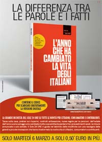 Si chiama 'L'anno che ha cambiato la vita degli italiani' la nuova iniziativa editoriale del quotidiano che mira a fungere da bussola per i cittadini in merito a tutti i cambiamenti portati dagli ultimi decreti. Il volume sarà in edicola solo martedi 6 marzo a 0,50 euro oltre al prezzo del Sole 24 Ore. La campagna è pianificata sui mezzi del Gruppo 24 Ore.