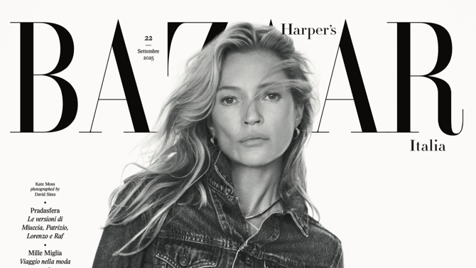 Kate Moss è sulla copertina dell’edizione Icons 2025 di Harper’s Bazaar Italia, in edicola con il numero di settembre: è il simbolo di un cambiamento epocale, ha spezzato l’incantesimo di una bellezza classica con una forza che veniva proprio dalla sua diversità, il tipo di volto che non ha bisogno di gridare per lasciare il segno.