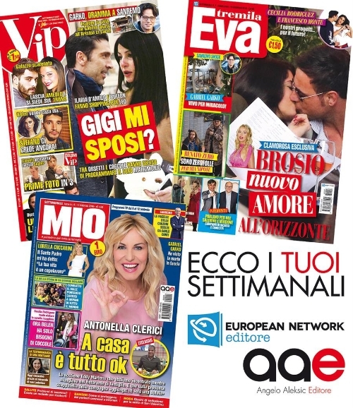 Importante iniziativa promozionale per Mio , Eva Tremila e Vip , in occasione del Festival di Sanremo. I tre settimanali, pubblicati dall'editore Angelo Aleksic con le sue case editrici European Network Editore e Angelo Aleksic Editore, saranno infatti protagonisti nelle location e negli eventi collaterali più esclusivi della kermesse canora, al via nella prossima settimana in diretta su Rai 1.