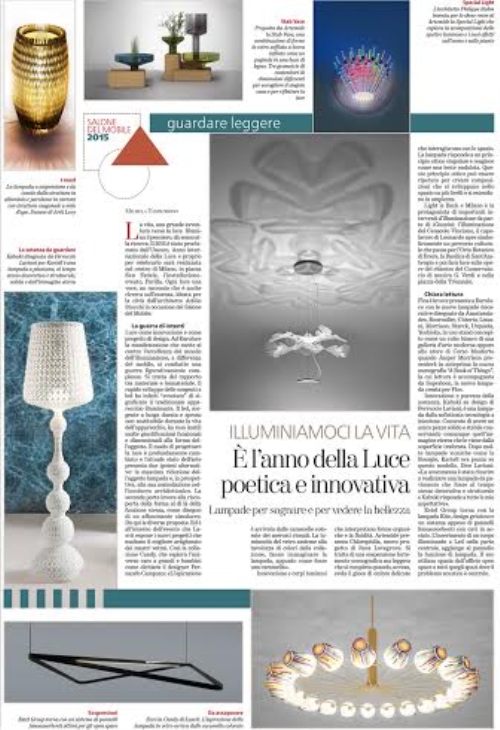 All'interno del Dossier di 16 pagine, centrali ed estraibili, i lettori potranno leggere interviste ai protagonisti del settore e scoprire e approfondire i principali eventi e le più importanti tematiche che saranno al centro dell’edizione 2015 dell'evento dedicato al design. Un’attenzione particolare sarà rivolta alla manifestazione biennale Euroluce, all’interno della quale vengono presentate le novità internazionali relative all’illuminazione.