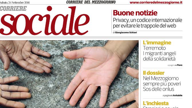 Corriere Sociale è il mensile del Corriere del Mezzogiorno che si occupa di tutte le tematiche legate al terzo settore nel Mezzogiorno.