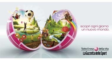 La Gazzetta dello Sport prosegue nel riposizionamento iniziato nel 2008 con l'introduzione del full color, il cambio di testata e con il nuovo pay-off 'Tutto il rosa della vita' e lancia un massiccio progetto di comunicazione rivolto soprattutto agli investitori pubblicitari ai quali racconta la molteplicità dei contenuti e il suo sistema multimediale. Previsti stampa, affissione statica e dinamica e maxi affissioni a Milano e Torino, web, Promocard e, in piazza San Carlo a Milano, un temporary shop con giochi di colori e luci.