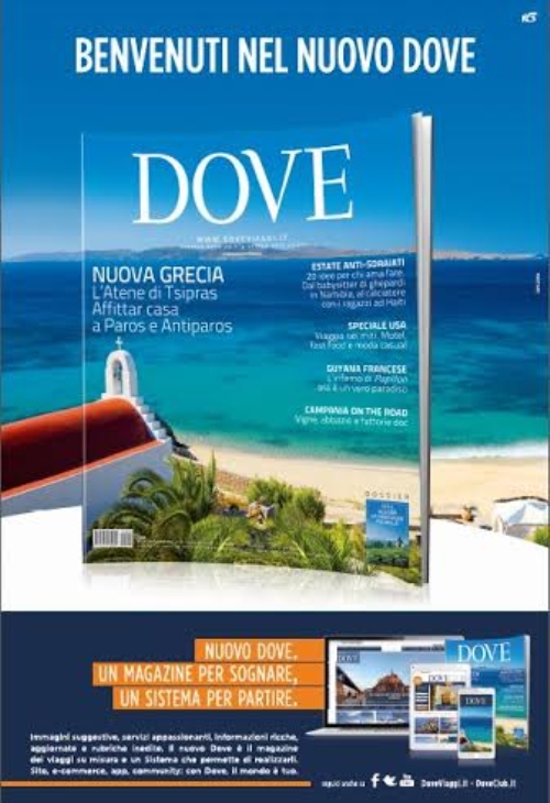 “Ogni servizio, poi, sarà identificato da un taglio preciso: dal viaggio sogno, da fare almeno una volta nella vita, allo sport, alla passione per la cultura del cibo, alle case da affittare per le vacanze, ma anche dall’on the roado alla vacanza su misura per i figli. La linea rossa che attraverserà il giornale sarà però sempre la cultura 3.0, la voglia di immergersi nel mondo per conoscere storie e terre che cambiano in continuazione e che nessuna ricerca su Google racconterà mai con gli occhi di un inviato. Questo è il primo passo della trasformazione del sistema multimediale Dove . Poi a giugno sarà on line il nuovo sito e in edicola un’edizione speciale del giornale per offrire un mondo su misura per viaggiatori moderni che vogliono essere informati a 360° in ogni momento della giornata, attraverso tutti i device disponibili”