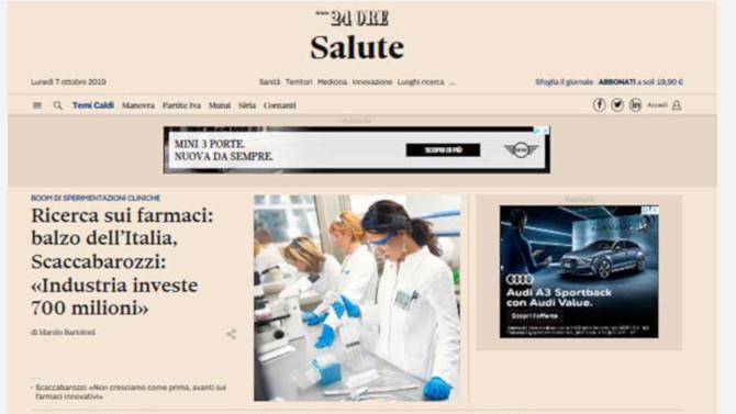 Un sistema multipiattaforma completo e integrato, quello che il Gruppo 24 ORE mette in campo al servizio dell’industry della salute, che permette a tutte le realtà del settore di entrare a contatto con tutti i target che ne sono interessati, da quello professionale a quello consumer attraverso i contenuti autorevoli e ad alto valore aggiunto di tutte le redazioni del Gruppo 24 ORE.
