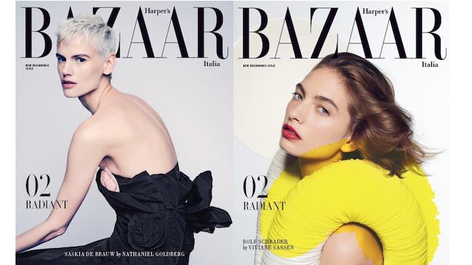 Le conferme iniziano proprio da questo secondo numero che celebra la settimana della moda milanese con contributor, immagini di altissimo profilo e due cover diverse, ma altrettanto importanti. I due scatti sono a cura di Viviane Sassen e di Nathaniel Goldberg: la prima è un’artista poliedrica con una spiccata sensibilità per le immagini di moda, sulle quali interviene con tecniche pittoriche come in questo ritratto della modella Rolf Schrader; il secondo, celebre fotografo e ritrattista, ha immortalato una delle bellezze più moderne ed enigmatiche del nostro tempo, la top model olandese Saskia de Brauw.
