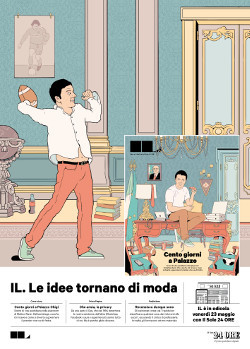 Il nuovo numero di “IL”, in edicola oggi, giovedì 22 maggio, ritorna sulla politica nella storia di copertina ed esamina i primi tre mesi del Governo Renzi. Un interessante retroscena sulla quotidianità vissuta a Palazzo Chigi, fuori dai microfoni e riflettori delle telecamere delle tv e fuori dagli schemi della classica politica. La campagna pubblicitaria, che riproduce i disegni dell’illustratore Giacomo Gambineri che ha curato la storia di copertina sui 100 giorni a Palazzo Chigi del premier Renzi, è stata pianificata sui mezzi del Gruppo 24 ORE.