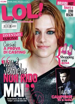 Il nuovo mensile femminile di Panini Publishing, LOL!, sarà in edicola da lunedì 26 luglio con il numero di agosto e regala alle proprie lettrici gli occhiali da sole fashion in due varianti di colore, bianco e blu. La copertina del mese è dedicata a Kristen Stewart, la ventenne protagonista del terzo appuntamento cinematografico della saga di Twilight, che si racconta in un’intervista esclusiva.Tra gli argomenti di maggiore interesse del numero, il dossier con i metodi più moderni ed efficaci per eliminare i tatuaggi, i consigli per tenere vivo un rapporto nato come flirt estivo e un articolo sul sesso sicuro che