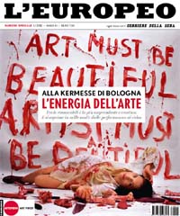L’Europeo è in edicola da oggi, venerdì 20 gennaio, con il numero speciale dal titolo 'L’energia dell’arte', dedicato all’arte contemporanea italiana: un viaggio nella storia e nel presente di Arte Fiera ma anche nel recente passato dell’arte in Italia.Alla vigilia dell’apertura della più importante mostra-mercato di arte contemporanea in Italia e tra le più importanti in Europa (27/30 gennaio 2012 a Fiera Bologna), il mensile RCS ripercorre la storia delle edizioni passate della manifestazione: da Marina Abramovic - in copertina - con la sua performance Imponderabilia del 1977, al ritorno alla scultura e alla pittura dei primi anni del 2000. Un viaggio nell’arte e uno spaccato del Paese raccontato attraverso gli storici reportage firmati L’Europeo e dalle interviste a Philippe Daverio, Achille Bonito Oliva e all’ex presidente di BolognaFiere Luca Cordero di Montezemolo.