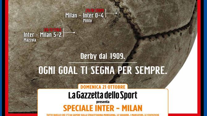 In occasione del derby Inter-Milan, domenica 21 ottobre i lettori troveranno in edicola La Gazzetta dello Sport con tiratura e foliazione maggiorate e con una copertina rovesciata di grande formato (405x575cm).