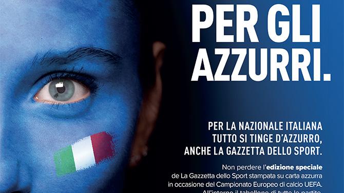 Per la Nazionale Italiana tutto si tinge d’azzurro anche La Gazzetta dello Sport che venerdì 11 giugno, in occasione della partita inaugurale di UEFA EURO 2020 che si terrà allo Stadio Olimpico di Roma, sarà in edicola con un numero da collezione. Un numero straordinario che dimostra la vicinanza e il supporto alla Nazionale impegnata nella competizione continentale. La Gazzetta dello Sport sarà tutta azzurra con una tiratura eccezionale. All’interno del giornale interviste esclusive, il calendario delle 51 partite, i sei gironi, gli stadi dove si terranno le partite, tutte le rose delle squadre, la doppia pagina con il mercato, i campioni e la storia dell’europeo.