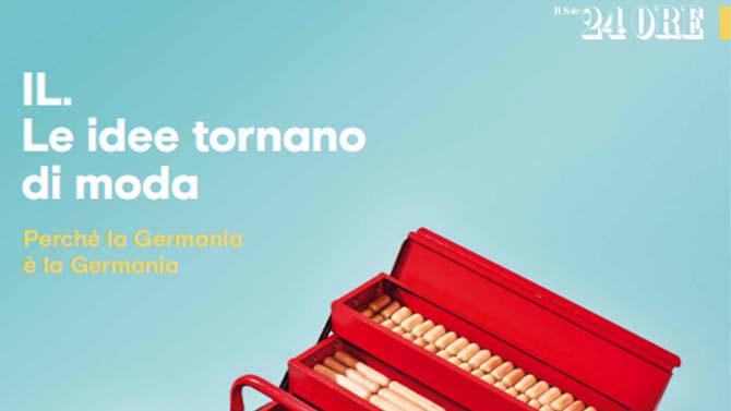 Dalle grandi aziende al calcio, dall’arte alla moda, dal cinema all’architettura, in una fotografia d’insieme IL mette in mostra il 'Made in Germany' che ha influenzato – e continua a farlo – il nostro modo di vivere. Attraversonumerose infografiche IL evidenzia e confronta i numeri tedeschi con quelli degli altri Paesi europei, sottolineando i rapporti commerciali che la Germania ha con il resto del mondo. Con un viaggio da Colonia a Lipsia, tra spazi industriali riconvertiti e una nuova scena creativa internazionale, un filo rosso chiude infine la storia di copertina di IL di maggio.