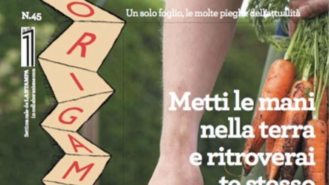 Giovedí 15 settembre sará in edicola 'Metti le mani nella terra e ritroverai te stesso' il nuovo numero di Origami dedicato al Salone del Gusto. Al suo interno i lettori, oltre all'editoriale del Direttore Cesare Martinetti, che ripercorre brevemente la storia di Slow Food e del Salone, tracciando un profilo del loro creatore Carlo Petrini e del contesto storico e culturale della loro nascita, possono trovare gli interventi di alcuni dei principali protagonisti del settore. Lo stesso Petrini é presente con un pezzo in cui spiega perché si sia scelto 'Voler bene alla terra' come tema dell'anno, mentre la Vice Presidente di Slow Food, l'americana Alice Waters, parla di 'Edible Schoolyard Project'; il progettointernazionale sviluppato dall'associazione per promuovere l'educazione e la coscienza alimentare nelle scuole.