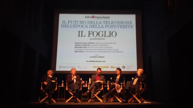 Fedele Confalonieri guarda volentieri Rai 5, mentre Marinella Soldi non si perde una puntata de 'Il Commissario Montalbano' ed è una grande fan di Maria De Filippi. Si è scoperto anche questo alla tavola rotonda organizzata da Il Foglio 'Il futuro della televisione nell'epoca della post-verità', tenutasi ieri sera, 30 gennaio, al Teatro Franco Parenti di Milano e moderata da Claudio Cerasa.