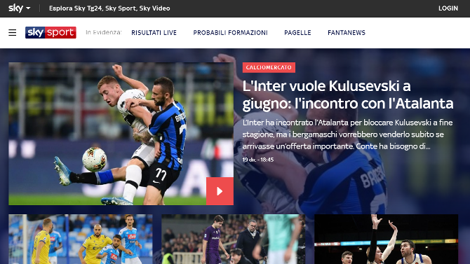 Calcio, calciomercato, Formula 1 e MotoGP si confermano i pilastri dell’informazione digitale di skysport.it. A questi si aggiungono i risultati di tennis ed NBA (il sito rimane official local destination per l’Italia). Le pagine viste nel corso dell’anno hanno toccato quota 1 miliardo, con un aumento di oltre il 50% rispetto al 2018. I video visti sono stati oltre 160 milioni, in crescita del 35% rispetto all’anno precedente.