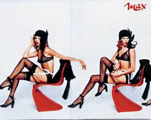 Max omaggia con il nuovo nuomero in edicola dal 1 aprile 2010 la musa di Salvador Dalì che nel 1965 realizzò la prima campagna pubblicitaria di 'Panton Chair' intitolata 'Come spogliarsi davanti a tuo marito’. Uno sensuale spogliarello eseguito da una bellissima Amanda Lear sulle linee di design di Panton.