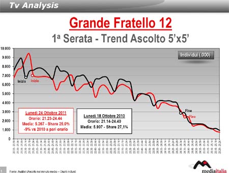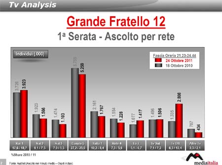 Media Italia. Grande Fratello 12: buon inizio in tempi di frammentazione