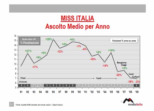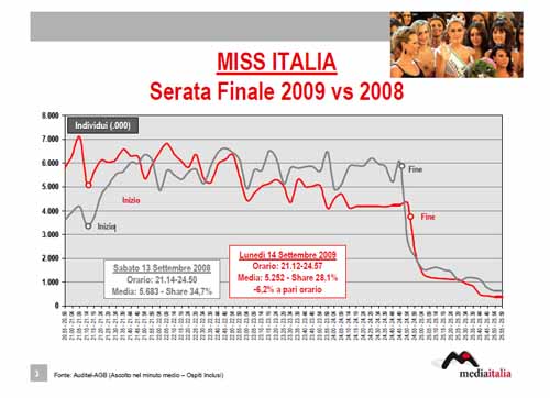 Media Italia. Miss Italia 2009: alta la Miss, basso l'ascolto