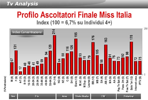Come abbiamo scritto ieri, le numerose novità di questa 72a edizione di Miss Italia (location, regolamento, conduttore, etc.) non sono bastate ad invertire il trend discendente iniziato nel 2000.