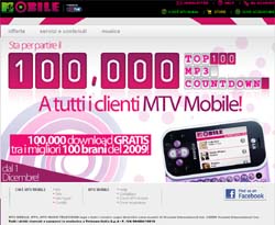 MTV Mobile 'powered by Tim', la telefonia mobile che unisce l’expertise di Tim, e MTV Italia, il punto di riferimento della musica e dei giovani, lancia Top 100 mp3 countdown. A partire dal 1° dicembre, tutti i clienti MTV Mobile possono scaricare gratuitamente e senza limiti 100.000 tracce dei 100 migliori brani del 2009, dai Tokio Hotel a Lady Gaga, da Beyoncé a Katy Perry, passando per Giusy Ferreri, Skun Anansie, Tiziano Ferro e Coldplay.