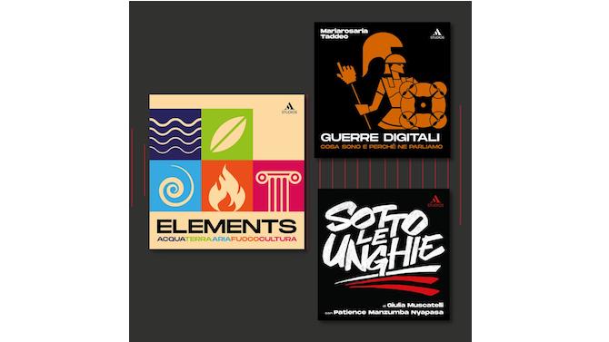 Tre i podcast che apriranno gli Original di Mondadori Studios, per un totale di 15 episodi, dedicati a tematiche di forte attualità, quali la salvaguardia del Pianeta, la sicurezza digitale e la violenza domestica: sono Elements, Guerre digitali e Sotto le unghie, disponibili gratuitamente su tutte le principali piattaforme di streaming audio e fruibili da qualsiasi dispositivo.