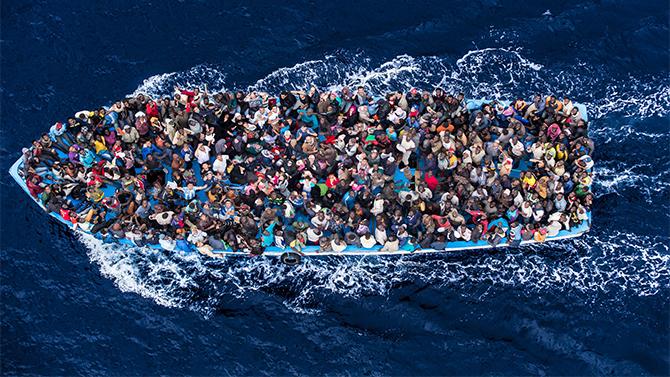 Estate 2014, nelle acque internazionali tra Libia e Sicilia, da un elicottero della Marina Militare italiana, Massimo Sestini scatta a un barcone carico di migranti una straordinaria foto zenitale diventata simbolo della crisi migratoria nel Mediterraneo.