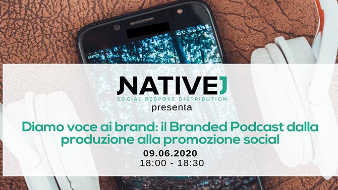 Per raccontare il fenomeno podcast e presentare le peculiarità del Branded Podcast NativeJ, che lo distinguono dall’attuale offerta di mercato, il 9 giugno alle ore 18:00 si terrà un webinar dal titolo ‘Diamo voce ai brand: il Branded Podcast dalla produzione alla promozione social’ che vedrà la partecipazione di Manuela Crotti, Founder & CEO di NativeJ, Georgia Giannattasio Founder & CEO di Mentre - Reliving Stories e Andrea Cervone, creator specializzato in area Tech.