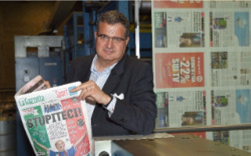 (Nella foto, il vicedirettore Umberto Zapelloni con La Gazzetta dello Sport tricolore fresca di stampa alle rotative di Pessano).