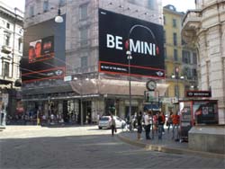 grazie alla applicazione Facebook realizzata ad hoc infatti, tutti possono diventare i protagonisti della campagna Mini e vedere la propria immagine proiettata sul maxi wall di 28 mq per ben 120 secondi. La dinamica on site e Facebook è la medesima e invita gli utenti a scegliere il proprio stile Mini. Attraverso il Mini Photo Box o la propria webcam è possibile immortalare la propria immagine incorniciata da cuffie colorate, associarla alla vettura Mini preferita e scattare.La foto verrà poi inviata al maxi wall di p.za Duomo dove rimarrà per 2 minuti e dove sarà visibile sia da tutti coloro che transiteranno per il centro, sia da tutti gli utenti collegati all’applicazione di Facebook che permette la visione Live del wall (http://apps.facebook.com/miniphotoboxitaly/?ref=ts). Un progetto integrato e mirato al coinvolgimento del target di riferimento che avvicina al mondo Mini divertendo, rendendo il billboard interattivo e aumentandone la visibilità da piazza Duomo a tutto il territorio nazionale e internazionale.