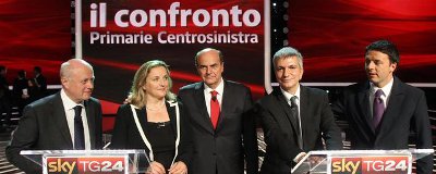 Sulla scia dei domocratici confronti tra i politici americani in campagna elettorale, i candidati alle primarie del centrosinistra italiano Bersani, Vendola, Renzi, Puppato e Tabacci hanno dato voce alle proprie idee e programmi lunedì 12 novembre in diretta tv su Sky Tg24.