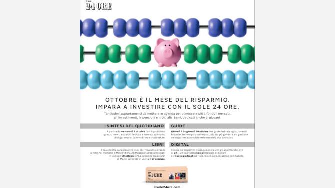 Per il Mese del Risparmio il Gruppo 24 Ore mette in campo 4 inserti, due guide dedicate, video pillole sul sito, due libri, un podcast e un programma su Radio24