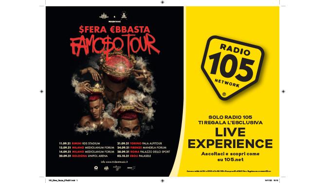 Radio 105 è radio ufficiale del tour di Sfera Ebbasta e mette in palio un'esclusiva experience. On air lo spot a supporto