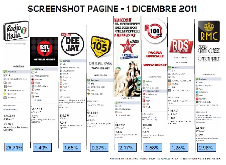 "Abbiamo superato i 200mila fan su Facebook - ha dichiarato Pontini -, colmando subito il gap con i nostri concorrenti (RDS, R101, RMC, ndr.) che hanno debuttato sul social network molto tempo prima di noi. La pagina di Radio Italia inoltre vanta un grado di interattività pari al 25-30%, mentre le altre emittenti si fermano per lo più all'1-2%".