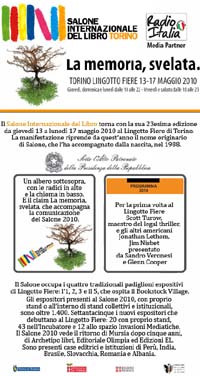 In supporto al Salone 2010, quest’anno dedicato alla 'memoria', Radio Italia ha pianificato una massiccia campagna di promozione radio, video e web: sul sito radioitalia.it è attiva un’intera pagina dedicata alla manifestazione completa di informazioni, date, programmi link e immagini. Possibilità di ascoltare in streaming i programmi e il palinsesto musicale dell’emittente anche sul sito salonelibro.it.