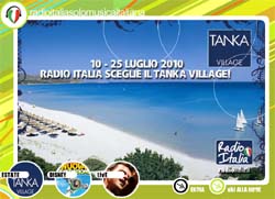 Radio Italia sceglie Atahotels per l’estate 2010: dal 10 al 25 luglio, l’emittente di sola musica italiana sarà on air dal Tanka Village, struttura di proprietà del gruppo Atahotels, a Villasimius in Sardegna. Il resort, che si contraddistingue in Italia per l’elevato grado di specializzazione dei servizi, si estende su 43 ettari di rigogliosa macchia mediterranea ed è circondato da un panorama di rara bellezza. Radio Italia trasferirà al Tanka Village, per due settimane, l’intero palinsesto radiofonico: gli speaker e 4 grandi ospiti musicali animeranno le giornate del resort e daranno agli ospiti la possibilità di immergersi nel frizzante mondo della radio, seguire le interviste e le dirette quotidiane, assistere e partecipare ai live dei beniamini della musica italiana. Sul sito radioitalia.it sarà on line un’intera pagina dedicata all’iniziativa, ricca di informazioni, appuntamenti e gallery fotografiche. La musica e i programmi di Radio Italia, inoltre, saranno in diffusione anche in tutte le strutture del gruppo Atahotels. Radio Italia riserva alla partnership una massiccia comunicazione e promozione radiofonica e televisiva.