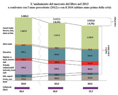 Il mercato del libro oggi non si è solo ridimensionato. Si è progressivamente trasformato, in termini di prodotto e di processo, in un quadro di allargamento a livello esponenziale della competizione internazionale e con un pubblico che accede a servizi e prodotti (editoriali e non) sempre più in mobilità.