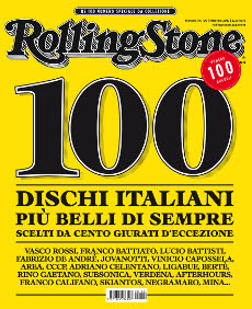 Nove anni di pubblicazioni - esattamente 2947 giorni dal primo novembre 2003, giorno di uscita sul mercato del primo numero di Rolling Stone Italia - cento dischi italiani tra i migliori di sempre attraverso cinquant'anni di musica del nostro paese: sono questi gli ingredienti che Rolling Stone ha mixato per celebrare l'appuntamento con il suo centesimo numero, in edicola dal 31 gennaio.Un progetto ambizioso quello di Rolling Stone per questo traguardo speciale: assemblare un listone dentro al quale fossero rappresentate tutte le derive del pop nostrano dal 1960 ad oggi. La selezione è stata effettuata da una speciale giuria trasversale composta da 100 tra i protagonisti della letteratura, dell'arte, della musica, della moda: da Niccolò Ammaniti a Carlo Verdone, da Renzo Rosso a Matteo Renzi, da Stefano Boeri a Fabio Novembre, fino a Mario Calabresi, Marco Travaglio, Valentino Rossi e Francesco Bonami, solo per citarne alcuni in campo extramusicale.