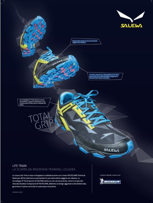 In occasione del lancio della calzatura Lite Train con suola Michelin, Salewa sarà in campagna pubblicitaria in Italia, Austria, Francia e Germania fino alla fine di Luglio.
