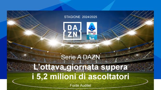 Serie A DAZN. L'ottava giornata supera i 5,2 milioni di ascoltatori