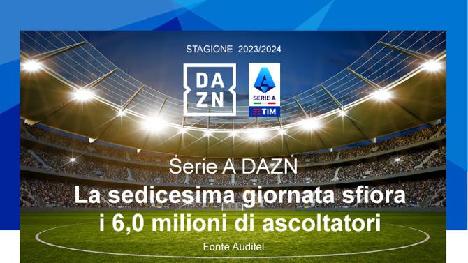 Serie A DAZN: la sedicesima giornata sfiora i 6 milioni di ascoltatori.