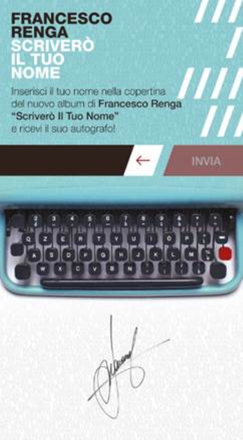 dall’artista e personalizzata con il nome dei fan (l’idea creativa si ricollega infatti al titolo dell’album 'Scriverò il tuo nome').