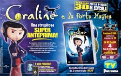 'Coraline e la porta magica' sarà in edicola con Tv Sorrisi e Canzoni e Panorama dal 27 ottobre in doppia versione 2D e 3D con 4 paia di occhialini speciali in regalo al prezzo di 14,90 euro (rivista esclusa).
