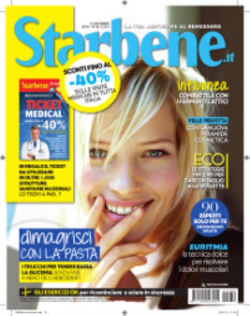 Starbene , il settimanale diretto da Cristina Merlino , lancia un'iniziativa speciale dedicata al benessere di tutta la famiglia. Con il numero in edicola questa settimana il magazine regala il Ticket Medical di Medicinaprivata.it : un ticket, del valore di 9,90€, che la testata riserva gratuitamente ai propri lettori per ottenere sconti fino al 40% su visite e analisi mediche in regime privato in tutta Italia .