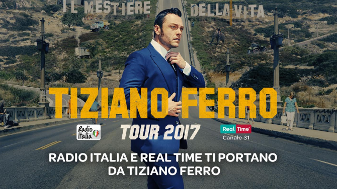 A poche settimane dalla partenza del 'Tiziano Ferro Tour 2017' negli stadi, Tiziano Ferro si racconta ai fan con un’intervista esclusiva, in diretta martedì 23 maggio alle 14.50 su Real Time (canale 31) e in contemporanea su Radio Italia, Radio Italia Tv e in streaming su Dplay.com e RadioItalia.it.