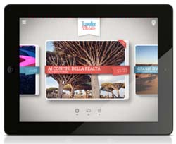 l’anima digitale che integra attivamente il nuovo magazine fornendo un'esperienza innovativa, in piena sintonia con l’heritage del brand.L'App propone un approccio originale al viaggio: ogni giorno la redazione di Traveller invierà all’utente una cartolina digitale caratterizzata, sul fronte, da un'immagine di Traveller, sul retro, tre consigli dedicati ai luoghi piùesclusivi e ricercati dove dormire, mangiare, da visitare, visualizzabili immediatamente su una mappa integrata con Google Maps. La postcard digitale racchiude in sé ampie potenzialità comunicative ed esperienziali. I contenuti potranno essere commentati, inviati via mail o condivisi sui social network.
