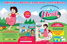 Dalla prossima settimana Tv Sorrisi e Canzoni propone in edicola "Il fantastico mondo di Heidi", la serie animata che da oltre 30 anni appassiona grandi e piccoli. La prima uscita della collana sarà in edicola al prezzo lancio di 4,90 euro (rivista inclusa). Tratta dal famoso romanzo della scrittrice svizzera Johanna Spyri, la storia della piccola Heidi, cresciuta dal nonno nelle alpi svizzere, all’insegna di sentimenti autentici e dell’amore per la natura, rappresenta un vero e proprio fenomeno che continua ad attirare milioni di spettatori di ogni età.Tv Sorrisi e Canzoni propone tutti gli episodi originali della serie in una nuova edizione ad alta qualità in 26 dvd, ciascuno accompagnato da un fascicolo illustrato. La collana sarà in edicola a partire dal 21 febbraio, a cadenza settimanale: il primo dvd al prezzo lancio di 4,90 euro (rivista inclusa) e i dvd successivi a 8,99 euro (rivista esclusa).