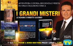 Il settimanale presenta la collana inedita 'I grandi misteri. Le indagini di Roberto Giacobbo' che esplora, in 20 dvd, suddivisi in diverse tematiche, con cadenza settimanale, i più grandi misteri dell’antichità e della modernità.
