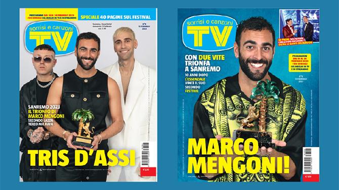 Grande successo di Tv Sorrisi e Canzoni anche in edicola con una copertura di oltre 1 milione e mezzo di copie per i tre numeri legati al Festival. Il terzo ed ultimo numero di Sanremo, disponibile da questa settimana, presenta l’esclusiva “doppia copertina”: una dedicata al primo classificato Marco Mengoni, l’altra ritrae lo scatto dei tre finalisti, Mengoni, Lazza e Mr.Rain, in redazione dopo la proclamazione. All’interno del numero quaranta pagine di speciale Sanremo con il reportage della settimana: dai personaggi ospitati in redazione all’opening party, dal dietro le quinte di Sorrisi al backstage esclusivo direttamente dall'Ariston.