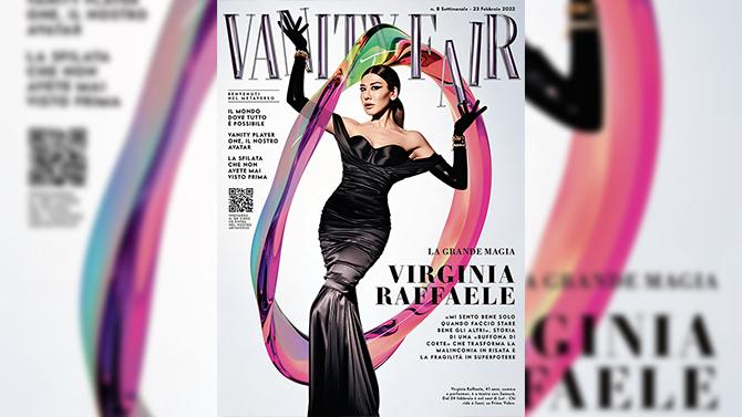 Protagonista, l’artista e performer Virginia Raffaele. Fotografata da Nima Benati, la vediamo al centro di un simbolico anello multiforme: è una rielaborazione in crypto art firmata dal collettivo svizzero ValuArt, partner di Vanity Fair in questa avventura, che evoca l'attraversamento del confine tra la nostra realtà da quella del Metaverso. È una cover che si trasforma e si anima: basta inquadrare il QR code stampato al fianco dell’immagine col proprio smartphone.