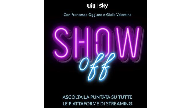 Show Off. Il videopodcast in formato talk sull'evoluzione del settore “media & entertainment” con ospiti d'eccezione. Host Francesco Oggiano per Will e Giulia Valentina per Sky, Show Off sarà disponibile a partire dal 17 febbraio con un episodio a settimana sul canale Spotify di Will (anche in formato video) e sul canale YouTube di Sky Italia. Prima puntata sulle serie TV con Salvatore Esposito.